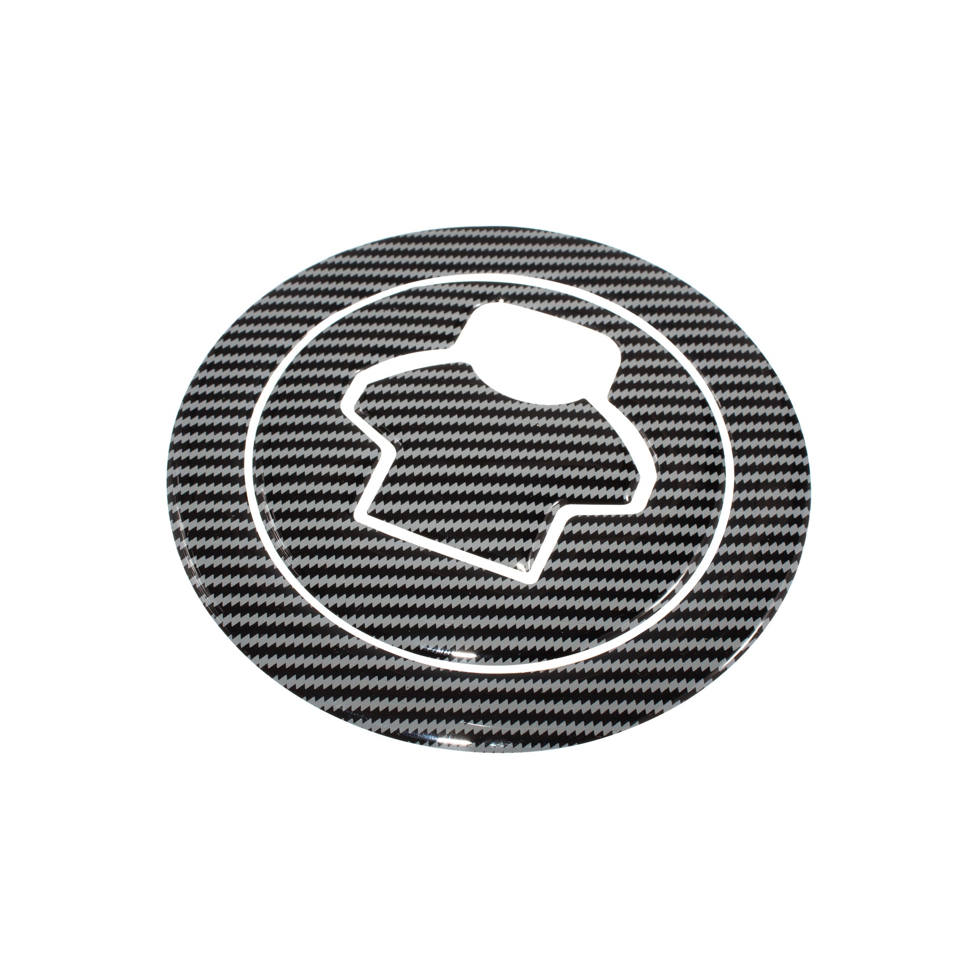 Carbon look self adhesive fuel cap covers. Each set comprises of fuel cap, keyflap and surround decals.