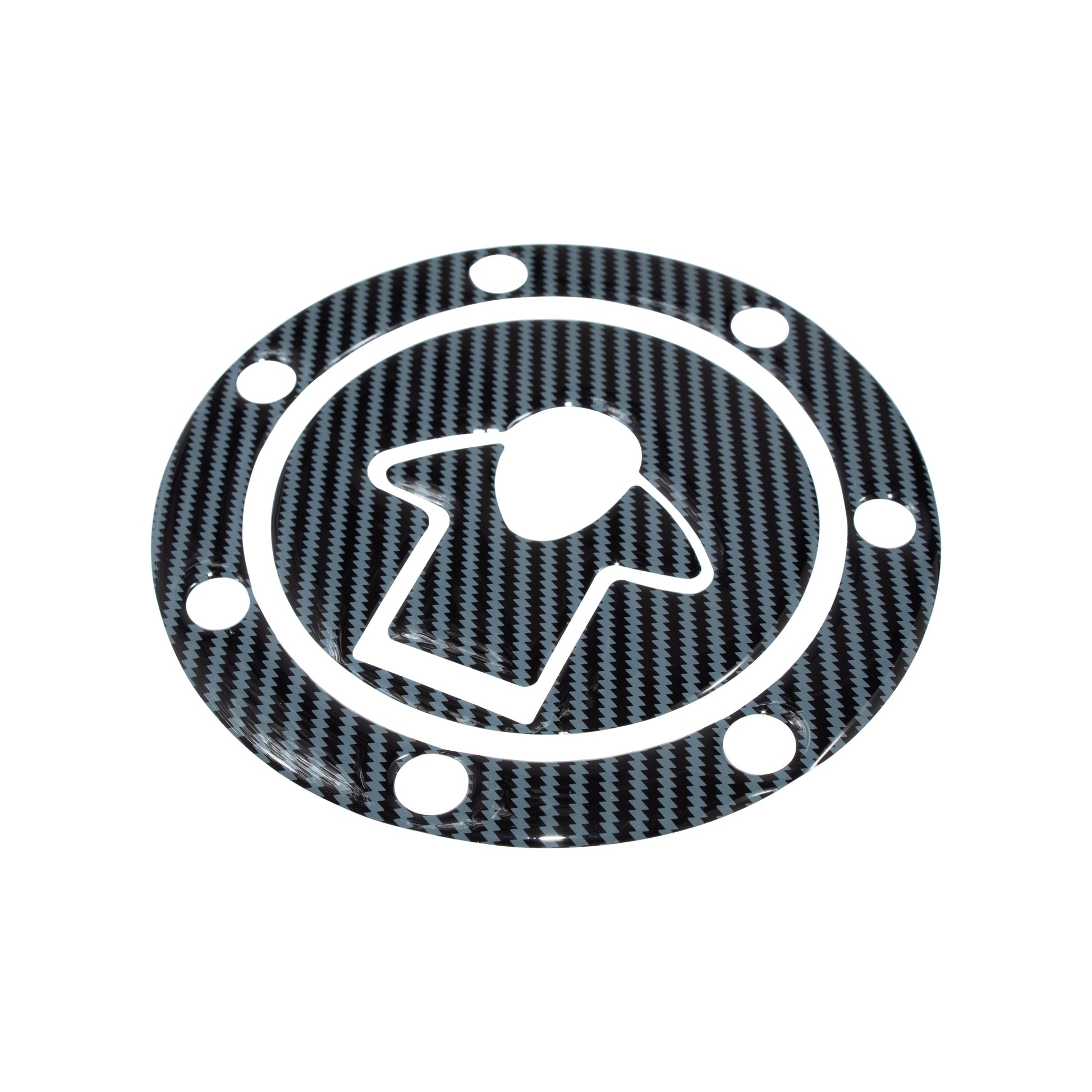 Carbon look self adhesive fuel cap covers. Each set comprises of fuel cap, keyflap and surround decals.